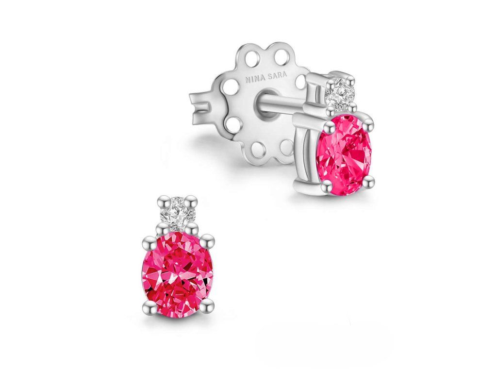 Dominantou každého páru je syntetický  – smaragd se svěží zelení, rubín v hlubokém odstínu červené, klasický modrý safír, něžný růžový safír nebo výjimečný tanzanit s fialovo-modrými tóny. Kámen je pečlivě zasazen tak, aby vynikla jeho barva i lesk. Kompozici doplňuje drobný zirkon, který dodává náušnicím jemný třpyt a luxusní akcent.