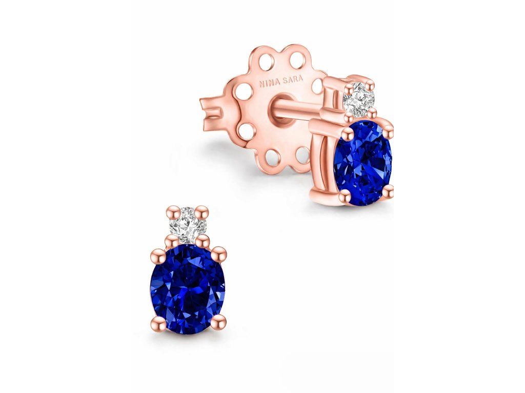 Dominantou každého páru je syntetický – smaragd se svěží zelení, rubín v hlubokém odstínu červené, klasický modrý safír, něžný růžový safír nebo výjimečný tanzanit s fialovo-modrými tóny. Kámen je pečlivě zasazen tak, aby vynikla jeho barva i lesk. Kompozici doplňuje drobný syntetický zirkon, který dodává náušnicím jemný třpyt a luxusní akcent.