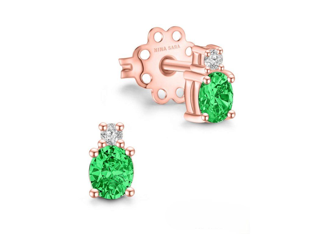 Dominantou každého páru je syntetický – smaragd se svěží zelení, rubín v hlubokém odstínu červené, klasický modrý safír, něžný růžový safír nebo výjimečný tanzanit s fialovo-modrými tóny. Kámen je pečlivě zasazen tak, aby vynikla jeho barva i lesk. Kompozici doplňuje drobný syntetický zirkon, který dodává náušnicím jemný třpyt a luxusní akcent.