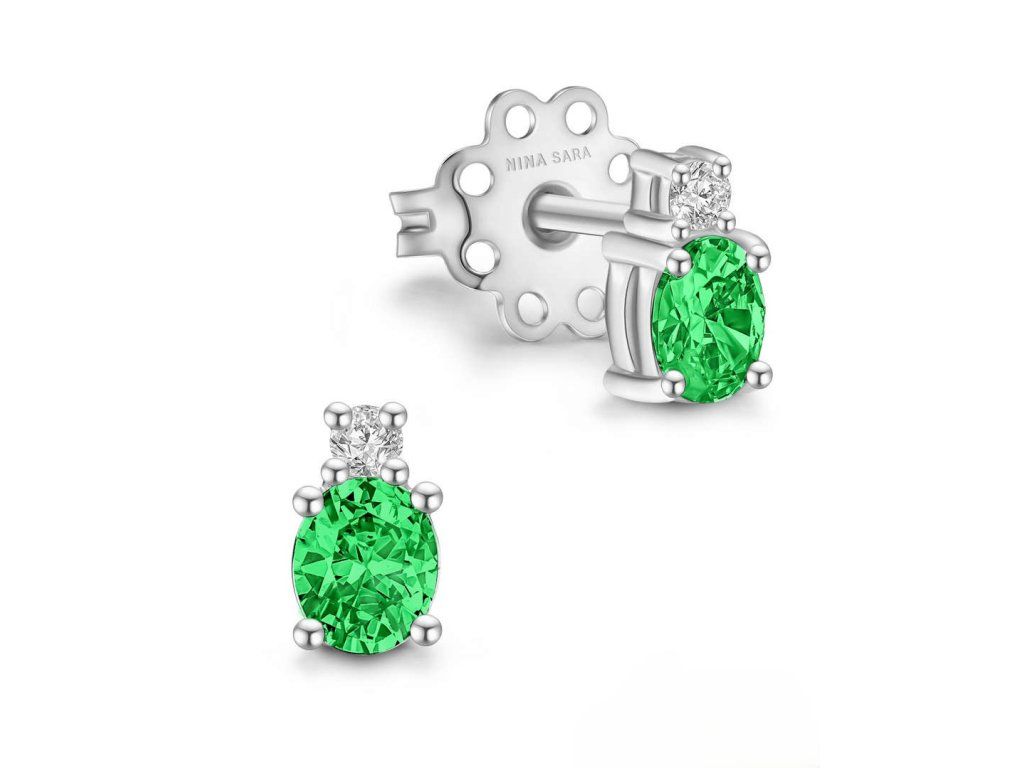Dominantou každého páru je syntetický  – smaragd se svěží zelení, rubín v hlubokém odstínu červené, klasický modrý safír, něžný růžový safír nebo výjimečný tanzanit s fialovo-modrými tóny. Kámen je pečlivě zasazen tak, aby vynikla jeho barva i lesk. Kompozici doplňuje drobný zirkon, který dodává náušnicím jemný třpyt a luxusní akcent.