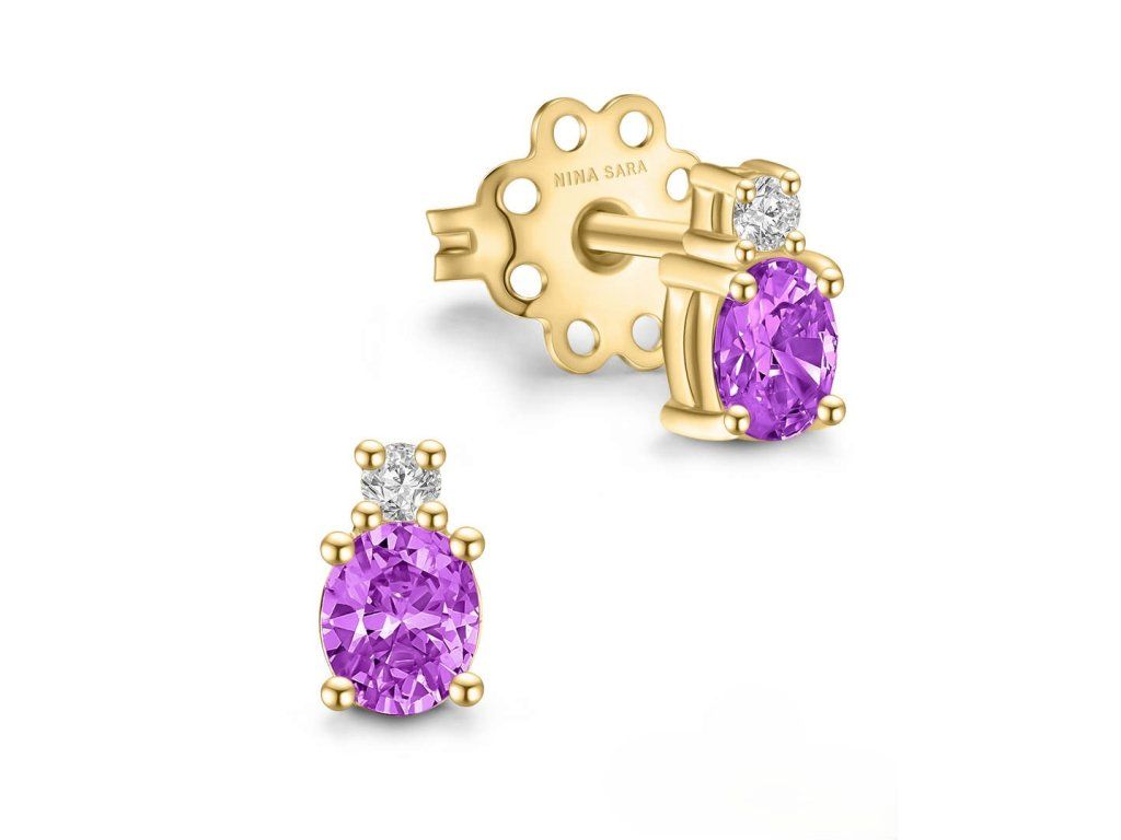Elegantní náušnice na puzetu zdobí syntetický smaragd, rubín, safír, růžový safír nebo tanzanit, doplněný drobným zirkonem, který šperku dodává jemný třpyt. Každý kámen vyniká svou jedinečnou barvou a je zasazen do kvalitního zlata 585/1000 ve variantě žluté, bílé nebo růžové. Nadčasový a decentní design je ideální pro každodenní nošení i slavnostní příležitosti