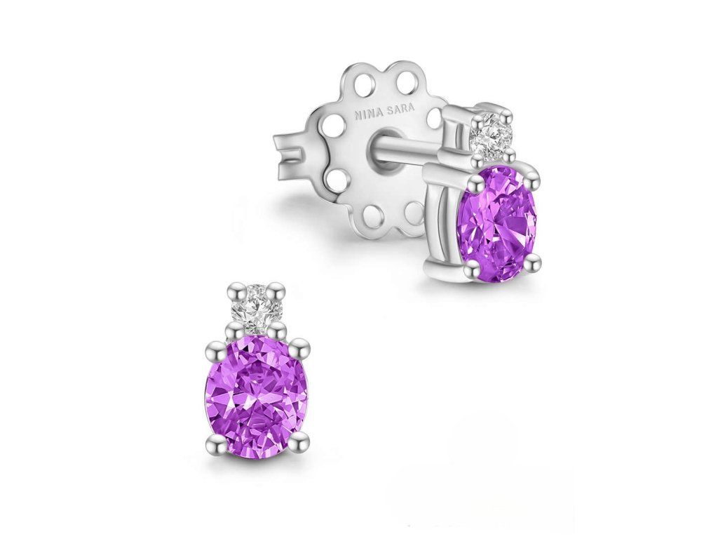 Dominantou každého páru je syntetický – smaragd se svěží zelení, rubín v hlubokém odstínu červené, klasický modrý safír, něžný růžový safír nebo výjimečný tanzanit s fialovo-modrými tóny. Kámen je pečlivě zasazen tak, aby vynikla jeho barva i lesk. Kompozici doplňuje drobný zirkon, který dodává náušnicím jemný třpyt a luxusní akcent.