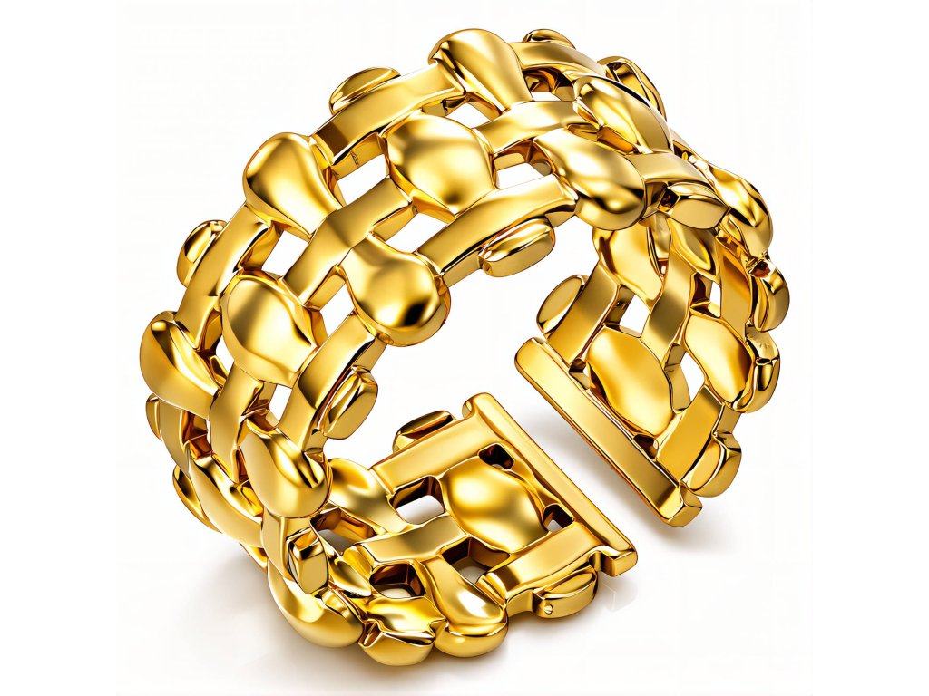 Prsten z kvalitní chirurgické oceli se zlacením 18karátovým zlatem provedeným moderní metodou IP/PVD (Ion Plating / Physical Vapour Deposition). Tato technologie nanášení zajišťuje výrazně vyšší odolnost proti oděru, poškrábání a ztrátě barvy než běžné galvanické pokovení. Povrch si tak dlouhodobě zachovává svůj lesk i sytý odstín zlata.