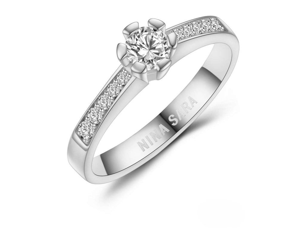 Elegantní prsten z bílého zlata 585/1000 (14 kt) s jedním výrazným zirkonem je symbolem nadčasové krásy a jemné elegance. Dominantní čirý zirkon je precizně zasazen tak, aby maximálně vynikl jeho třpyt a odraz světla. Jednoduché, čisté linie obroučky nechávají kámen dokonale vyniknout a dodávají šperku sofistikovaný vzhled.