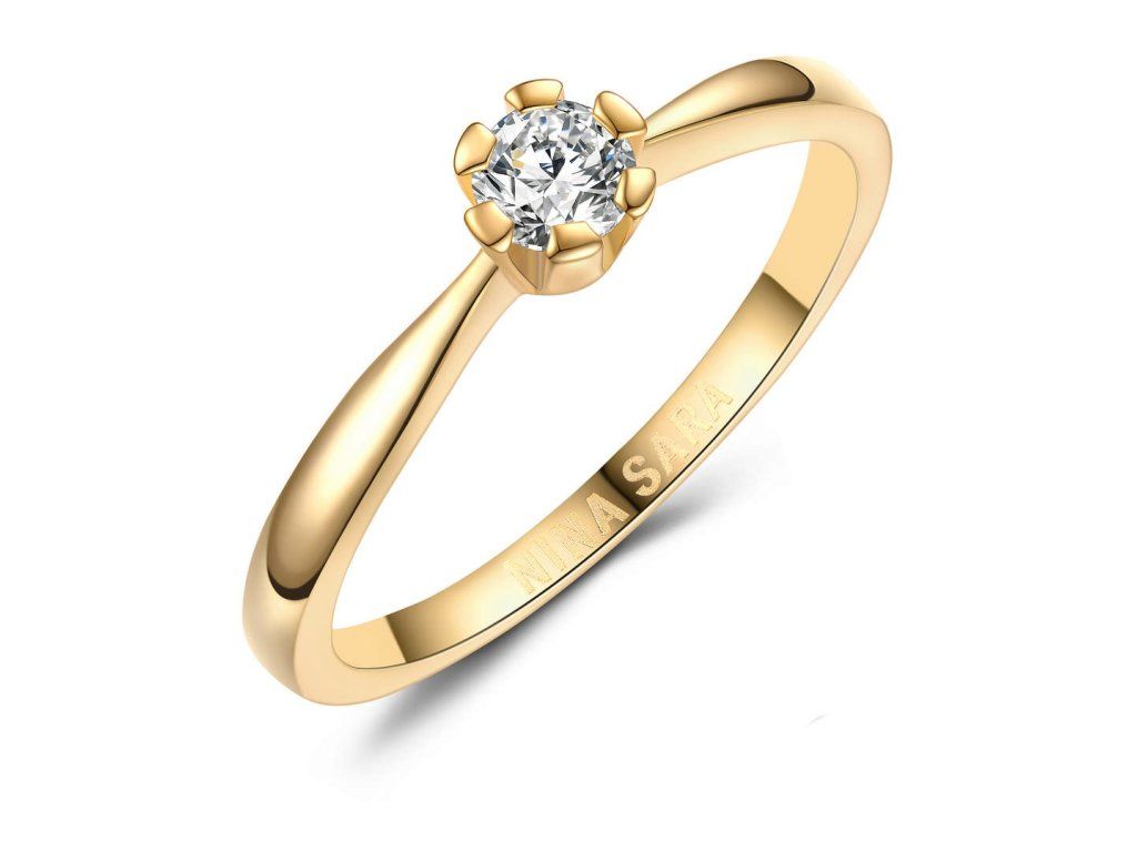 Tento zlatý prsten s jedním zirkonem je ideální jako dárek k narozeninám, výročí nebo jako jemný zásnubní prsten. Minimalistický design z něj činí univerzální doplněk, který snadno sladíte s dalšími šperky ze žlutého zlata.