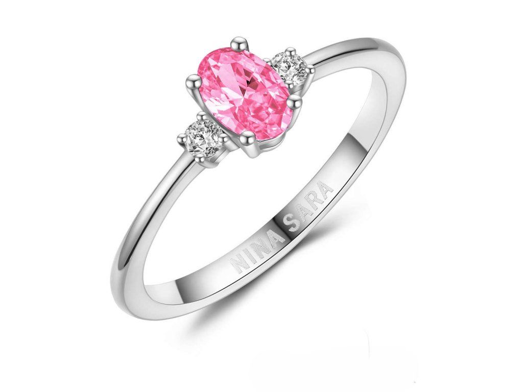 Dominantou prstenu je syntetický safír s intenzivní růžovou barvou, která symbolizuje harmonii, naději a nový začátek. Kámen je pečlivě zasazen tak, aby vynikla jeho hloubka, jas i přirozená kresba. Po jeho stranách jsou osazeny dva zirkony, jejichž čirost a brilantní brus dodávají prstenu oslnivý třpyt. Zirkony jemně zvýrazňují centrální růžový safír a vytvářejí vyváženou a harmonickou kompozici.