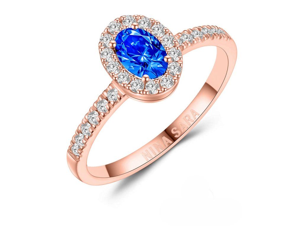 Dominantou prstenu je syntetický safír s intenzivní modrou barvou, která symbolizuje harmonii, naději a nový začátek. Kámen je pečlivě zasazen tak, aby vynikla jeho hloubka, jas i přirozená kresba. Po jeho stranách jsou osazeny zirkony, jejichž čirost a brilantní brus dodávají prstenu oslnivý třpyt. Zirkony jemně zvýrazňují centrální safír a vytvářejí vyváženou a harmonickou kompozici.