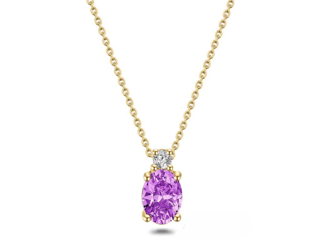 Zlatý náhrdelník se syntetickým kamenem a zirkonem – zlato 585/1000 (14 kt)