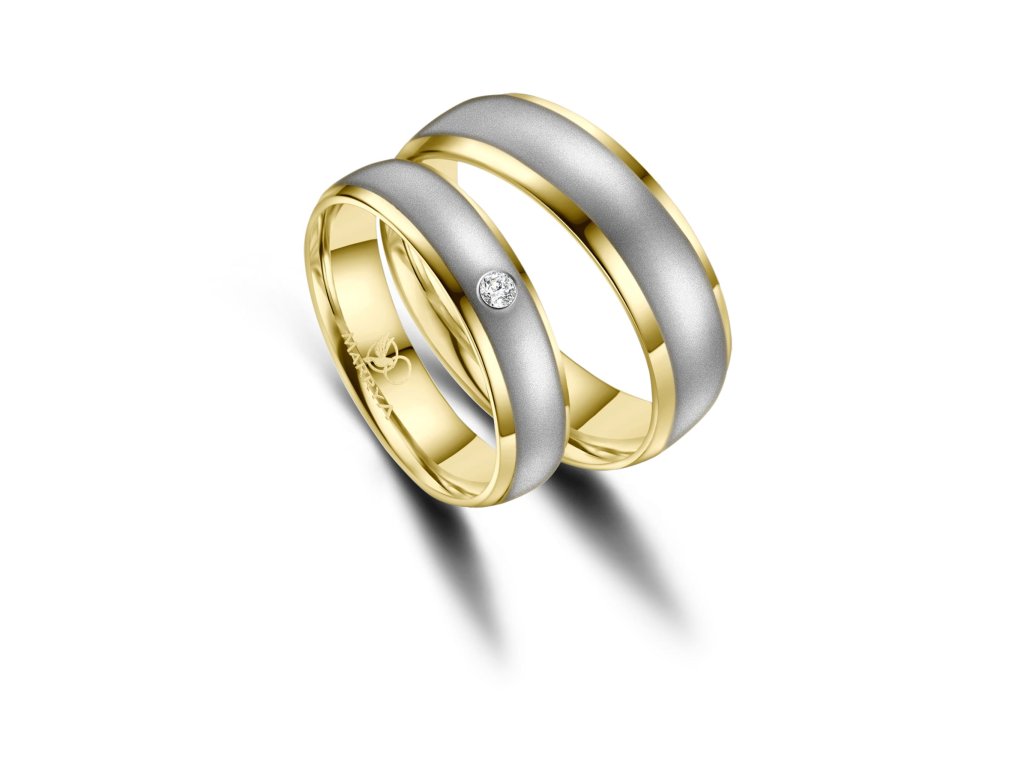 Prsteny mají komfortní vnitřní profil, který zajišťuje příjemné nošení po celý den. Povrch je precizně zpracovaný do jemně matovaného efektu, jenž působí elegantně a zároveň minimalizuje viditelnost drobných škrábanců. Dámský prsten je ozdoben zirkonem nebo diamantem, které dodávají šperku jemný třpyt a luxusní vzhled, zatímco pánský prsten zůstává čistý, jednoduchý a moderní.