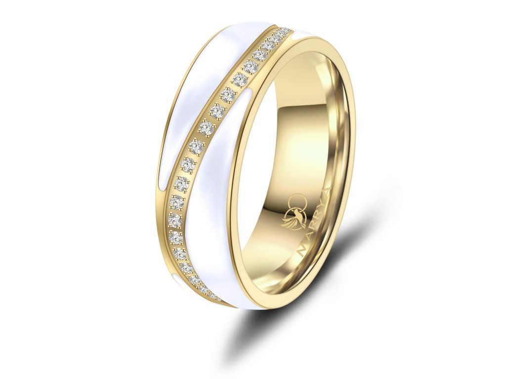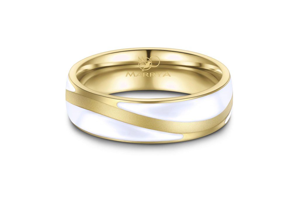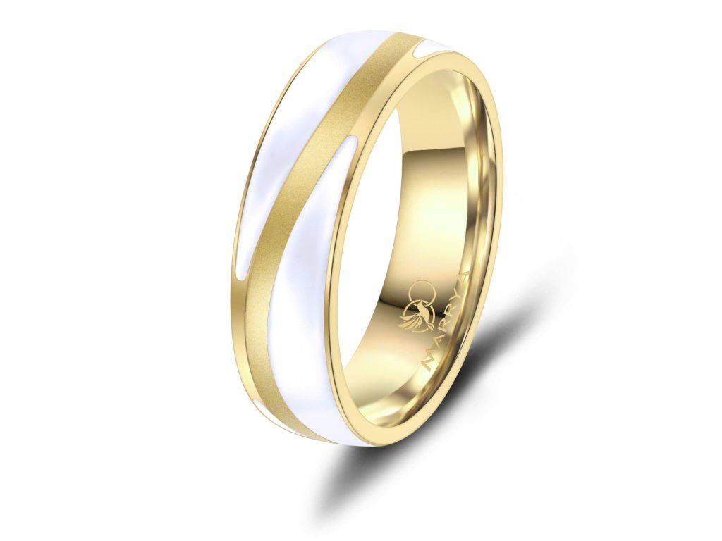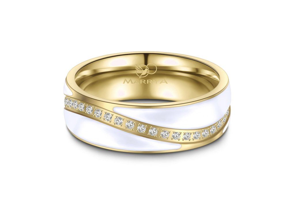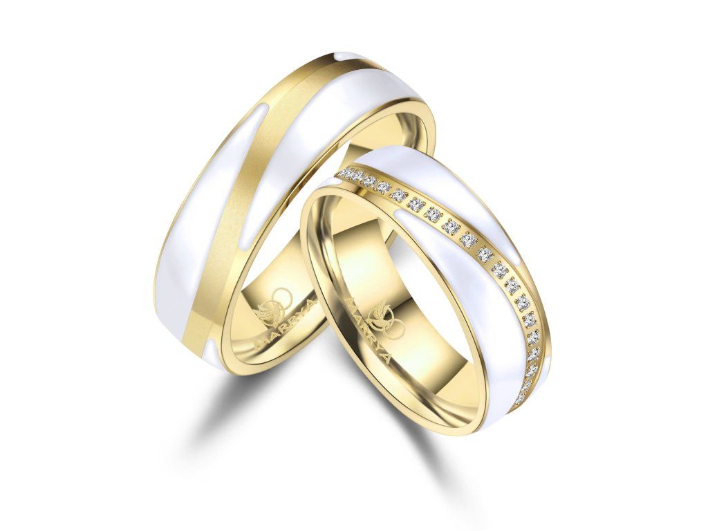 Prsteny mají komfortní vnitřní profil, který zajišťuje příjemné nošení po celý den. Povrch je precizně zpracovaný do jemně matovaného efektu zlacení, jenž působí elegantně a zároveň minimalizuje viditelnost drobných škrábanců. Dámský prsten je ozdoben řadou zirkonů, které dodávají šperku jemný třpyt a luxusní vzhled, zatímco pánský prsten zůstává čistý, jednoduchý a moderní.