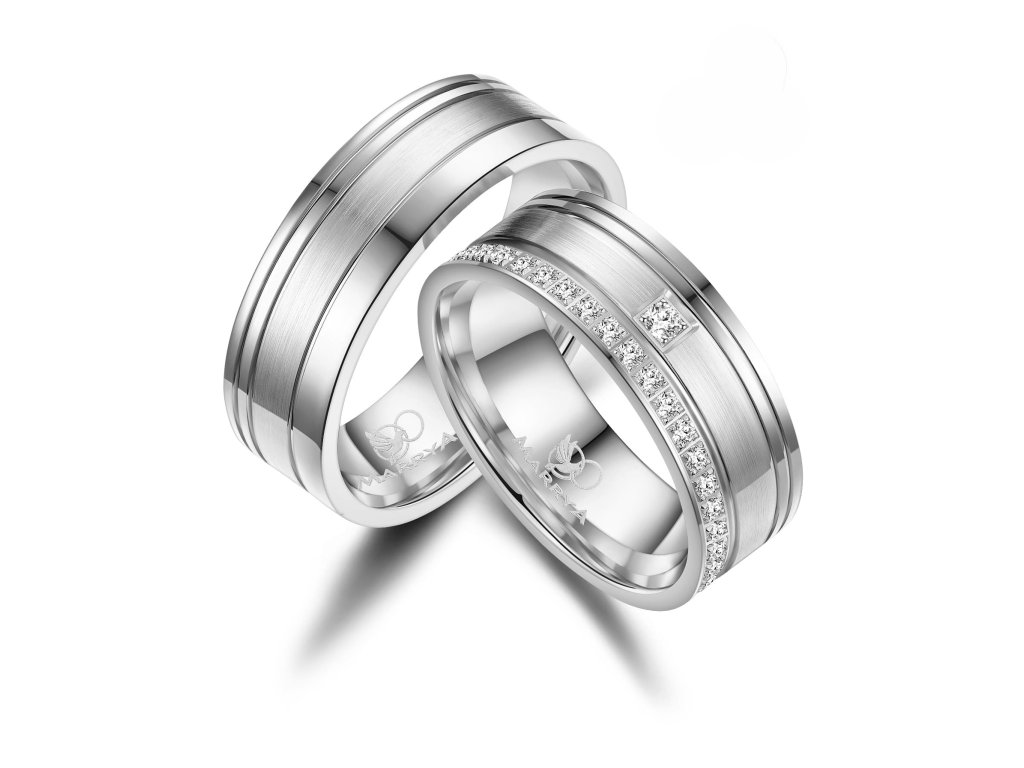 Tyto snubní prsteny ze stříbra mají exkluzivní tvar a vysoce lesklý povrch s matnou částí, který podtrhuje jejich nadčasový a elegantní vzhled. Díky jednoduchému profilu jsou pohodlné pro každodenní nošení a snadno se kombinují s dalšími šperky. Dámský prsten je ozdoben j kubickými zirkony nebo diamanty po celé délce obvodu jenž dodává šperku jemný třpyt a luxusní detail, aniž by narušoval minimalistický desing. Šířka prstenu 7,00 mm představuje ideální rovnováhu mezi jemností a výrazností. Tyto stříbrné snubní prsteny jsou symbolem lásky a závazku a jsou vhodnou volbou pro páry hledající elegantní, cenově dostupné a nadčasové snubní prsteny. Snubní prsteny s rytinou jsou zbožím upraveným na míru, u kterého nelze dle § 1837 občanského zákoníku uplatnit vrácení ve lhůtě 14 dnů nebo odstoupení od smlouvy.