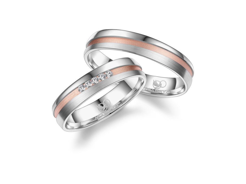 Tyto snubní prsteny ze stříbra mají klasický půlkulatý tvar a vysoce lesklý povrch doplněny o zlacený vzor, který podtrhuje jejich nadčasový a elegantní vzhled. Díky jednoduchému profilu jsou pohodlné pro každodenní nošení a snadno se kombinují s dalšími šperky. Dámský prsten je ozdoben 5 kubickými zirkony, jenž dodává šperku jemný třpyt a luxusní detail, aniž by narušoval minimalistický desing. Šířka prstenu 4,5 mm představuje ideální rovnováhu mezi jemností a výrazností. Tyto stříbrné snubní prsteny jsou symbolem lásky a závazku a jsou vhodnou volbou pro páry hledající elegantní, cenově dostupné a nadčasové snubní prsteny. Snubní prsteny s rytinou jsou zbožím upraveným na míru, u kterého nelze dle § 1837 občanského zákoníku uplatnit vrácení ve lhůtě 14 dnů nebo odstoupení od smlouvy.