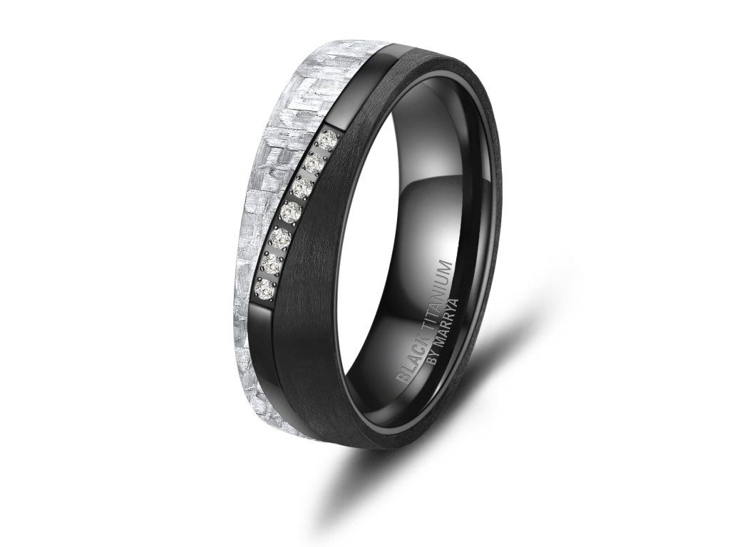 Titan je hypoalergenní, mimořádně lehký a vysoce odolný vůči poškrábání i korozi, což z něj činí ideální materiál pro každodenní nošení. Karbonové prvky dodávají prstenům jedinečný charakter a zajišťují, že každý kus je originál.
