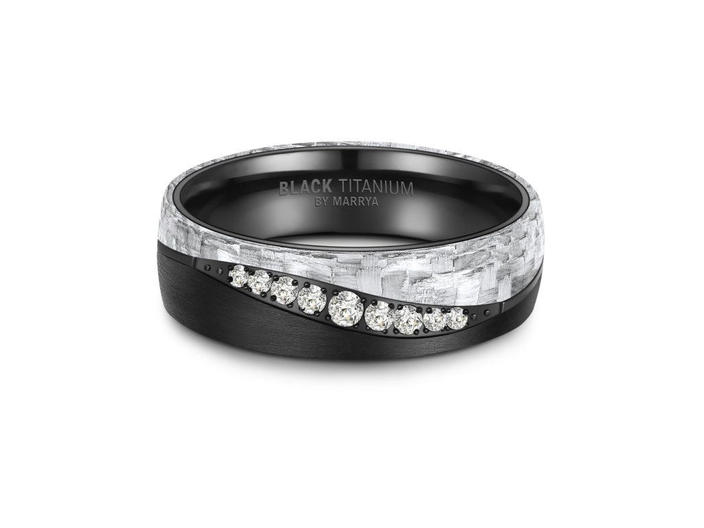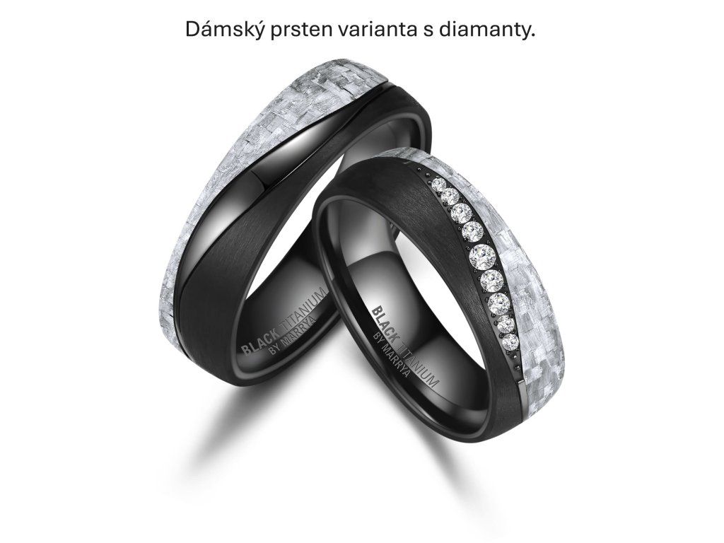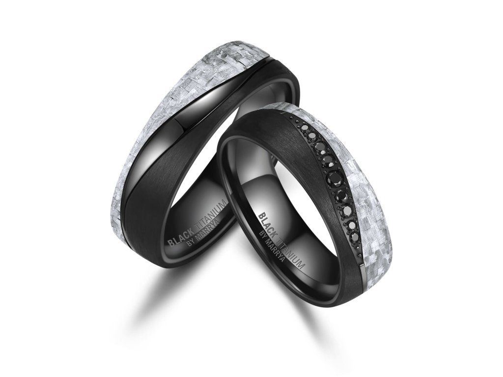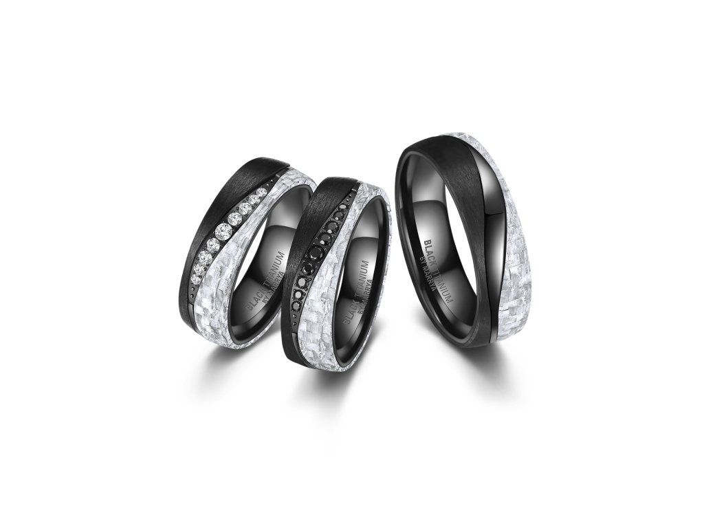 legantní snubní prsteny z černého titanu a bílého karbonu zaujmou na první pohled svým moderním a nadčasovým designem. Kombinace těchto dvou špičkových materiálů vytváří výrazný kontrast – matně černý titan symbolizuje sílu, odolnost a stálost, zatímco bílý karbon dodává prstenům lehkost, originalitu a luxusní vzhled.