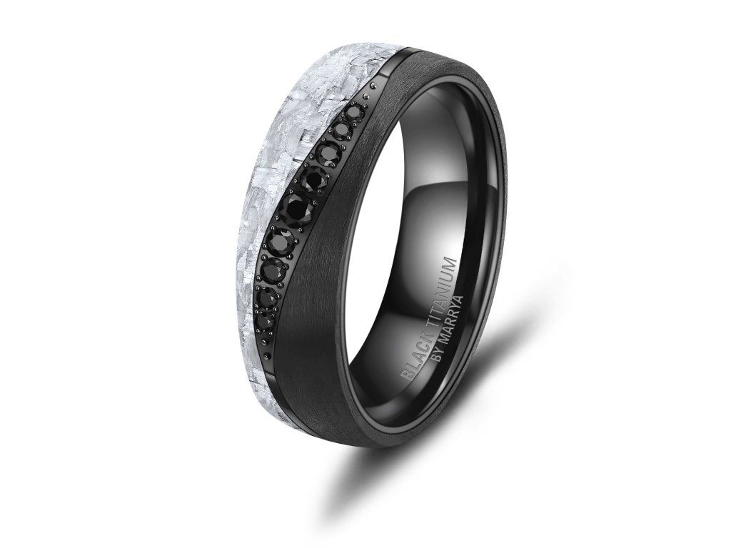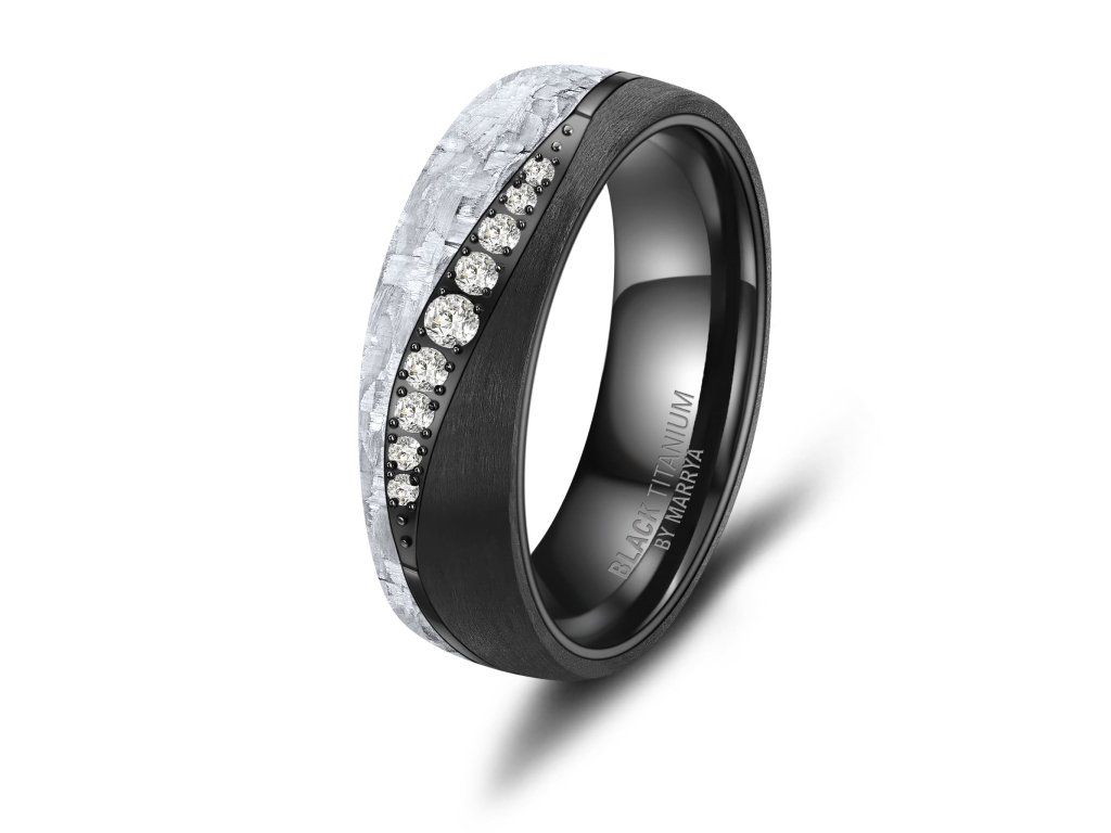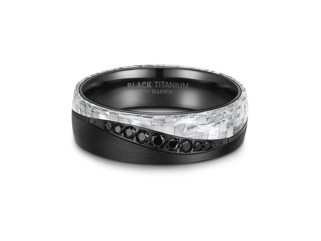 Titan je hypoalergenní, mimořádně lehký a vysoce odolný vůči poškrábání i korozi, což z něj činí ideální materiál pro každodenní nošení. Karbonové prvky dodávají prstenům jedinečný charakter a zajišťují, že každý kus je originál.