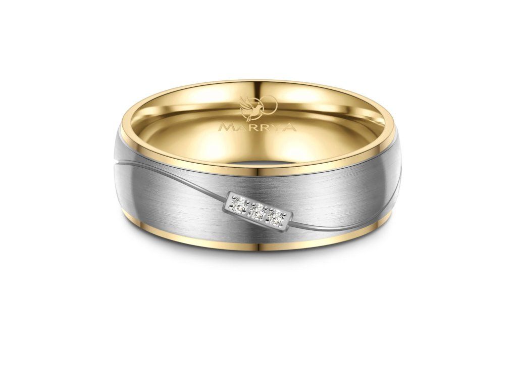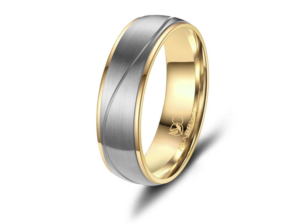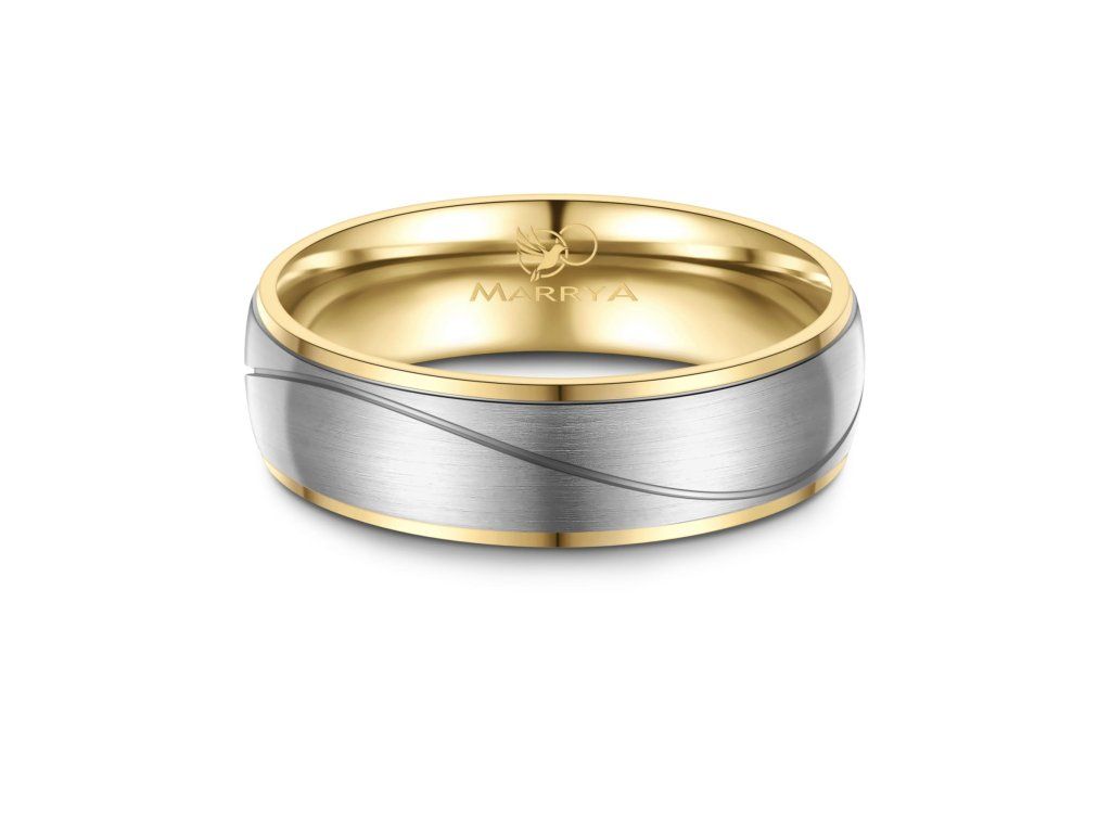 Minimalistický proužek uprostřed prstenu je decentním, ale výrazným designovým prvkem. Díky němu prsten nepůsobí příliš výrazně, zároveň však přitahuje pozornost svou elegancí a precizním zpracováním. Tato kombinace barev je ideální pro páry, které chtějí moderní prsteny s jemným nádechem klasiky.