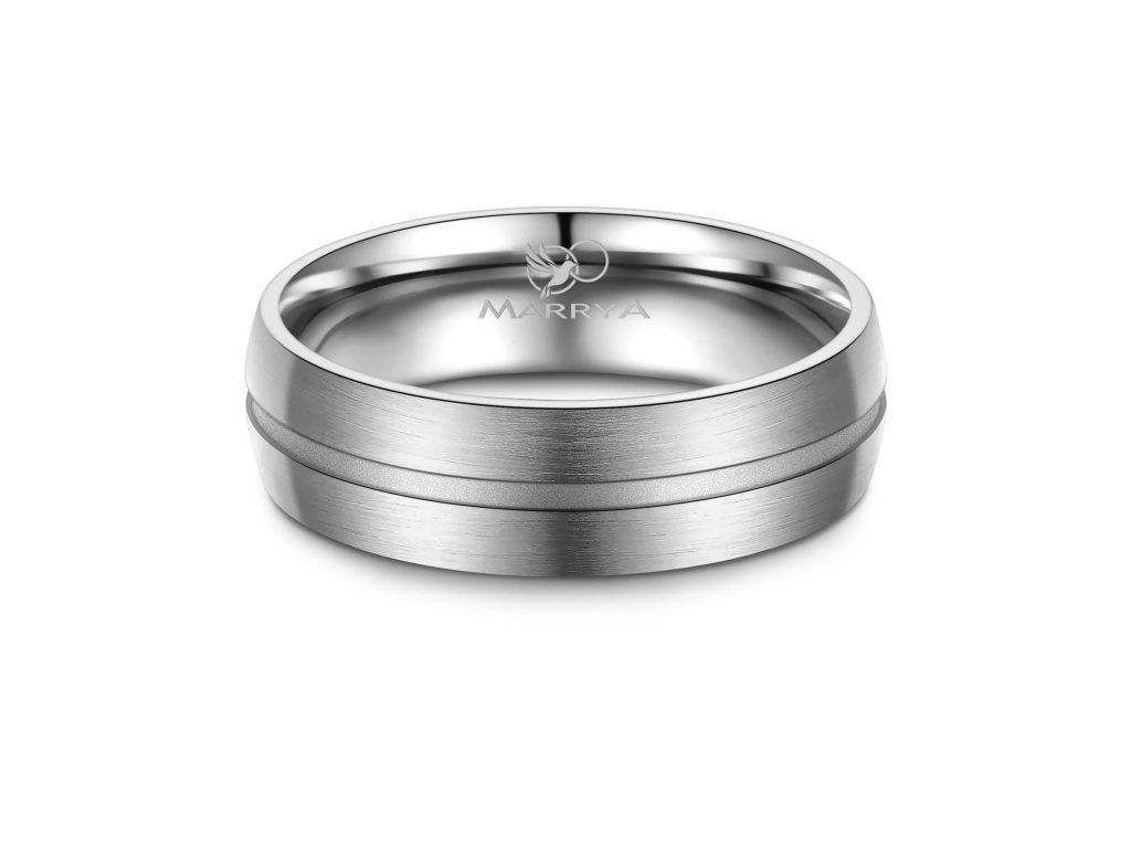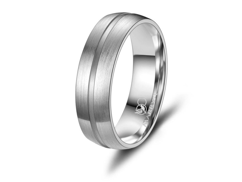 Minimalistický proužek uprostřed prstenu je decentním, ale výrazným designovým prvkem. Díky němu prsten nepůsobí příliš výrazně, zároveň však přitahuje pozornost svou elegancí a precizním zpracováním. Tato kombinace barev je ideální pro páry, které chtějí moderní prsteny s jemným nádechem klasiky.