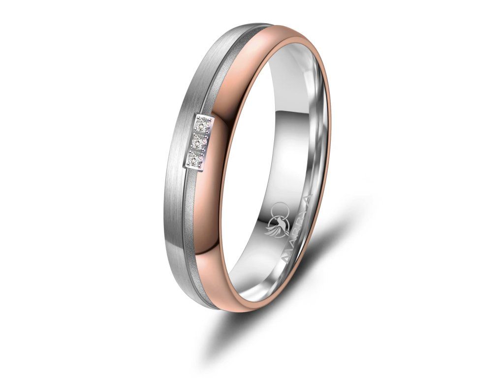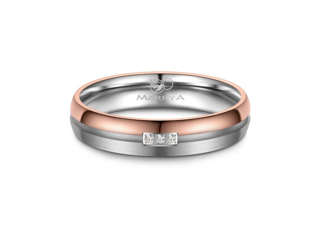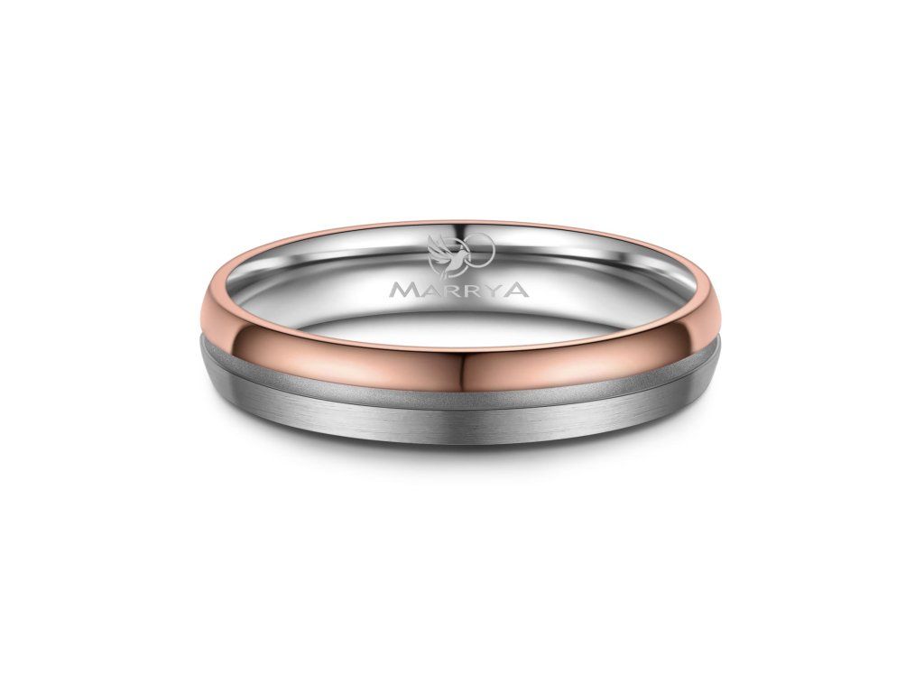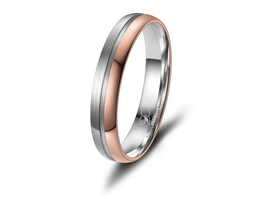 Minimalistický proužek uprostřed prstenu je decentním, ale výrazným designovým prvkem. Díky němu prsten nepůsobí příliš výrazně, zároveň však přitahuje pozornost svou elegancí a precizním zpracováním. Tato kombinace barev je ideální pro páry, které chtějí moderní prsteny s jemným nádechem klasiky.
