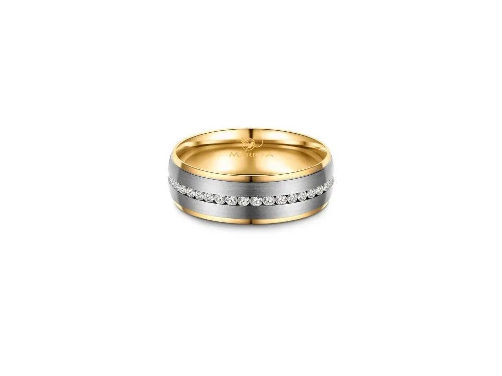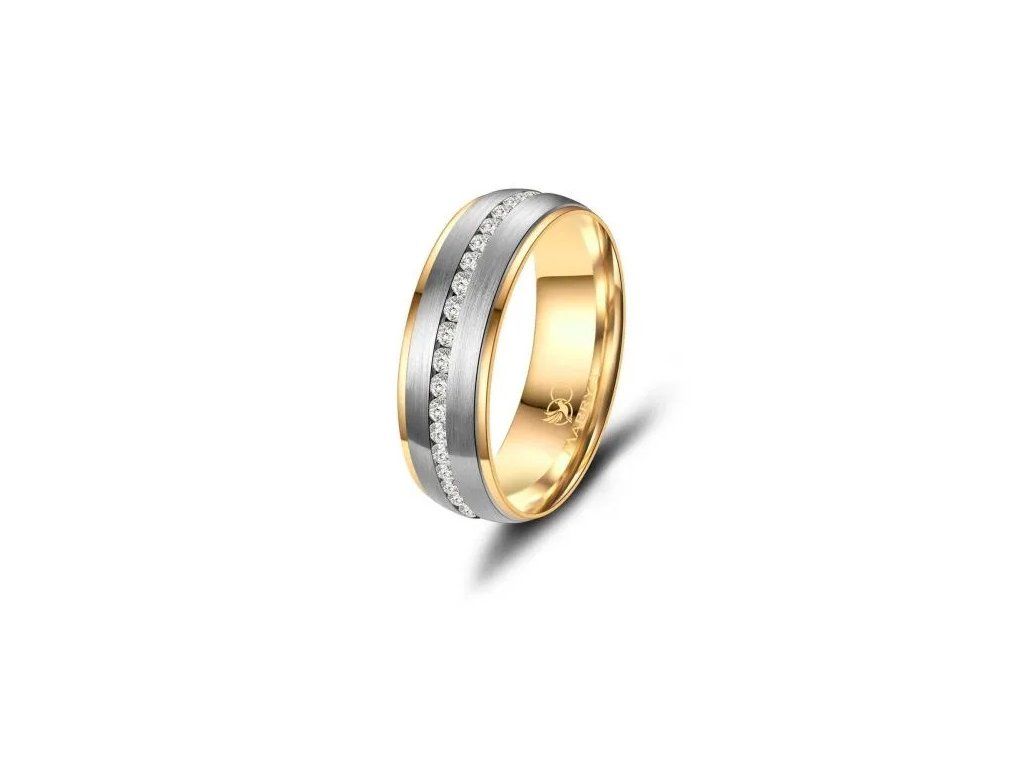Minimalistický proužek uprostřed prstenu je decentním, ale výrazným designovým prvkem. Díky němu prsten nepůsobí příliš výrazně, zároveň však přitahuje pozornost svou elegancí a precizním zpracováním. Tato kombinace barev je ideální pro páry, které chtějí moderní prsteny s jemným nádechem klasiky.