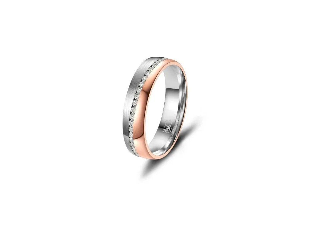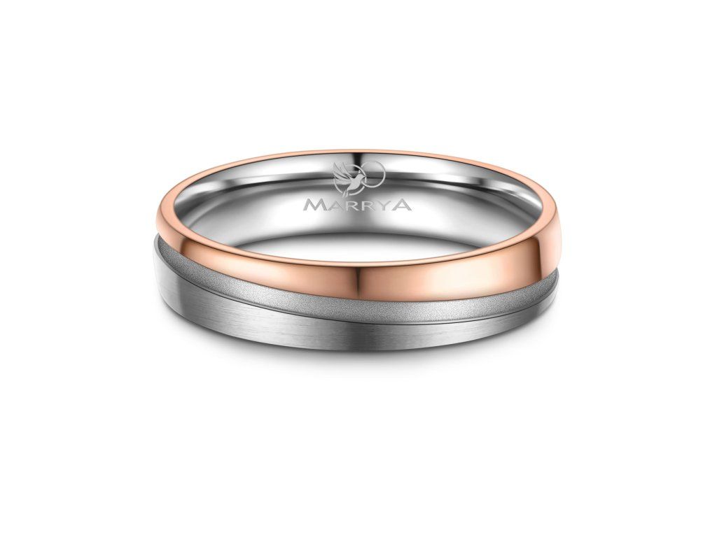 Minimalistický proužek uprostřed prstenu je decentním, ale výrazným designovým prvkem. Díky němu prsten nepůsobí příliš výrazně, zároveň však přitahuje pozornost svou elegancí a precizním zpracováním. Tato kombinace barev je ideální pro páry, které chtějí moderní prsteny s jemným nádechem klasiky.