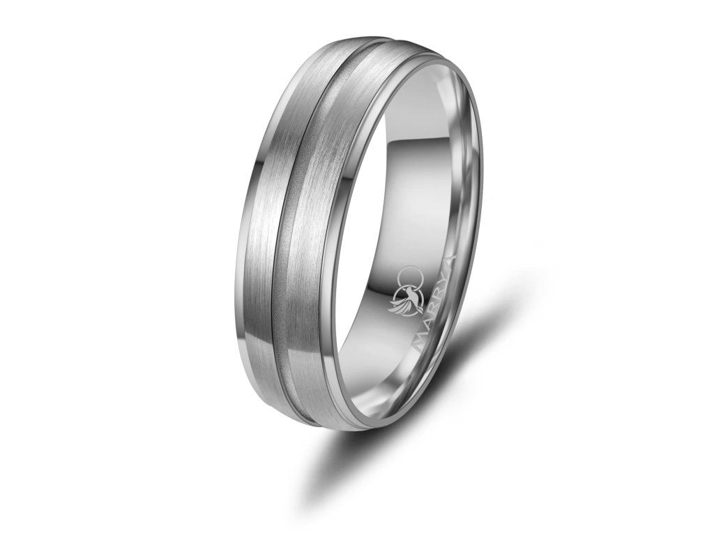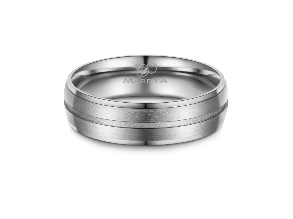 Minimalistický proužek uprostřed prstenu je decentním, ale výrazným designovým prvkem. Díky němu prsten nepůsobí příliš výrazně, zároveň však přitahuje pozornost svou elegancí a precizním zpracováním. Tato kombinace barev je ideální pro páry, které chtějí moderní prsteny s jemným nádechem klasiky.
