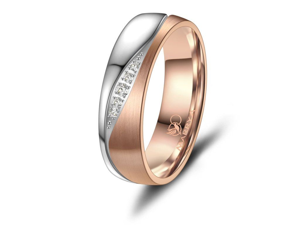Minimalistický proužek uprostřed prstenu je decentním, ale výrazným designovým prvkem. Díky němu prsten nepůsobí příliš výrazně, zároveň však přitahuje pozornost svou elegancí a precizním zpracováním. Tato kombinace barev je ideální pro páry, které chtějí moderní prsteny s jemným nádechem klasiky.