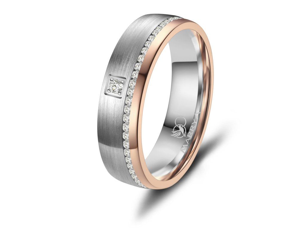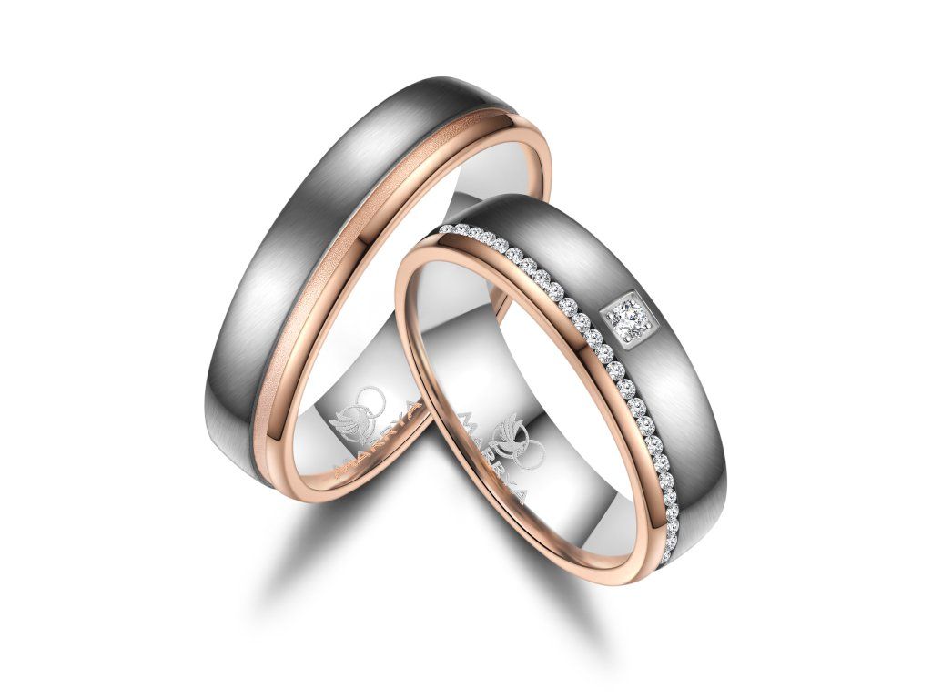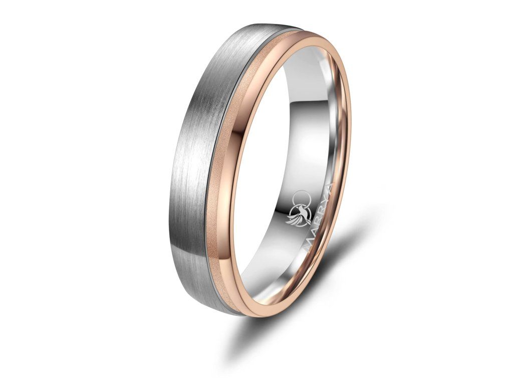 Minimalistický proužek uprostřed prstenu je decentním, ale výrazným designovým prvkem. Díky němu prsten nepůsobí příliš výrazně, zároveň však přitahuje pozornost svou elegancí a precizním zpracováním. Tato kombinace barev je ideální pro páry, které chtějí moderní prsteny s jemným nádechem klasiky.